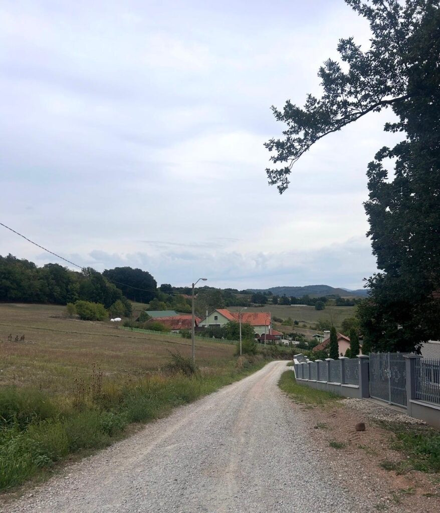 Met de taxi ben ik binnen een uur in Svilajnac, vanwaar ik verder ga. Ik loop lekker en de route is gemakkelijk qua ondergrond (alleen maar asfalt) en qua hoogtemeters (geen). Na een tijdje vind ik een bankje onder wat bomen, de ideale plek om te lunchen in de schaduw. Tenminste… totdat ik ondergescheten wordt door een vogel boven me in de boom. Een abrupt en smerig einde van een vredevolle lunch.