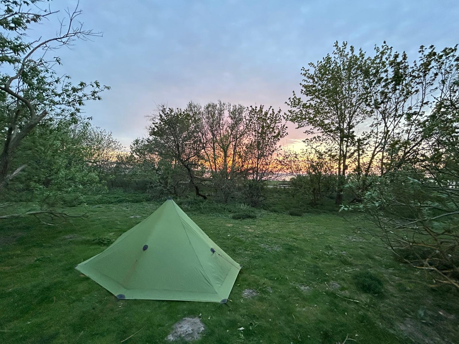 Ik loop door boerenland en door bossen en voor zessen stop ik al bij een schuilhut in het bos. Ik besluit dit keer mijn tent niet op te zetten en te kijken hoe ik slaap onder zo’n overkapping. Er staan vuurkorven en er ligt hout, ik maak een vuurtje. Geen overbodige luxe want het is best koud. Overigens weer heerlijk geslapen, al voelt het wel alsof ik mijn trouwe tentje in de steek laat… Maar hoe leuk als er een eekhoorntje rommelt rondom mijn bed in de ochtend.