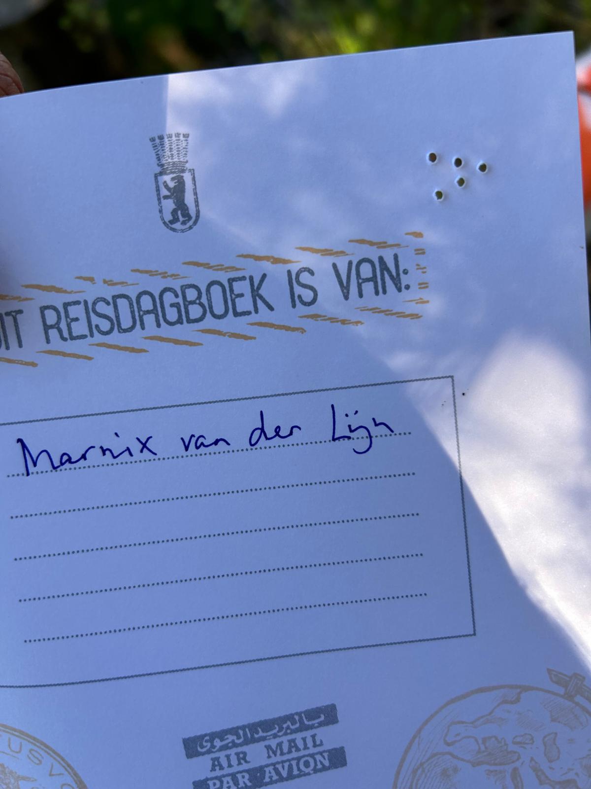 I’m still happily lounging in my tent when I hear voices. Two girls are holding a piece of paper and place it on a post in front of my tent, using some kind of stapler without staples. I had noticed the post yesterday but had no idea what it was. Turns out, it’s a device that punches a specific pattern of holes in paper. Hilarious—I’m right on the path of a school treasure hunt, and for the rest of the morning I get plenty of visitors. Around thirty kids pass by in small groups, every ten to twenty minutes or so. Of course, I get my own little hole-punched stamp too. A permanent souvenir for my travel journal.