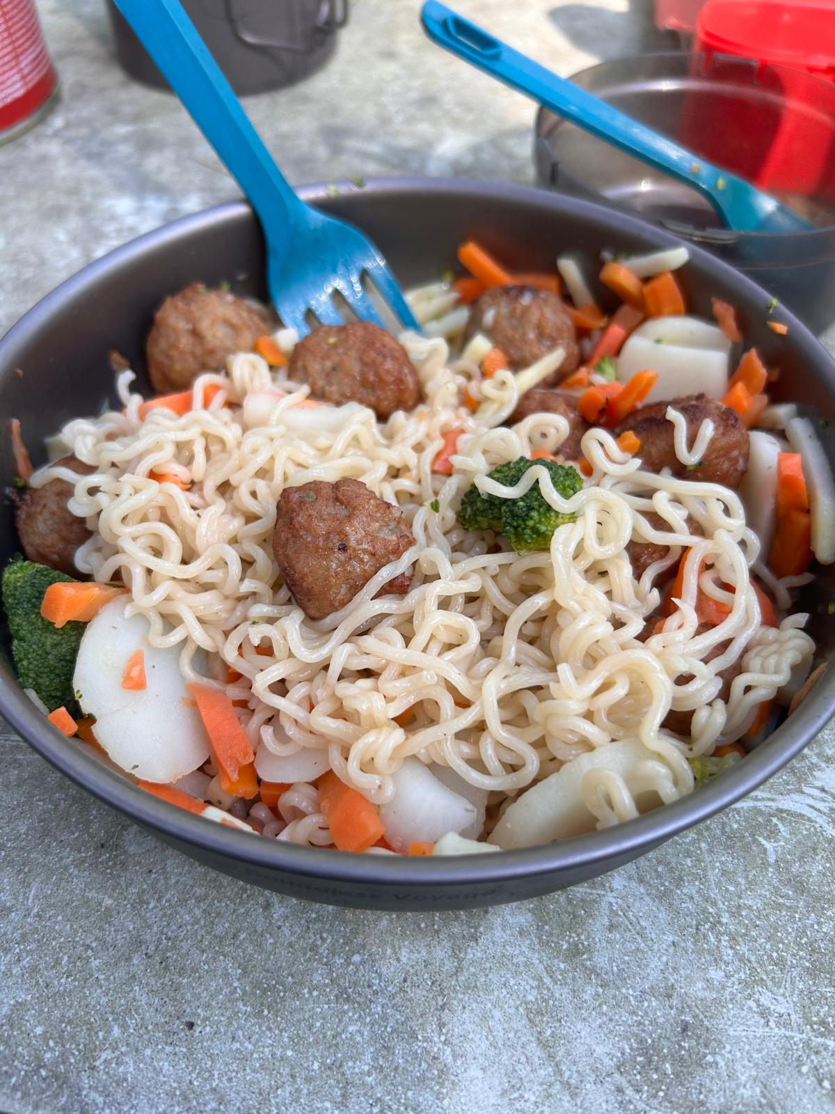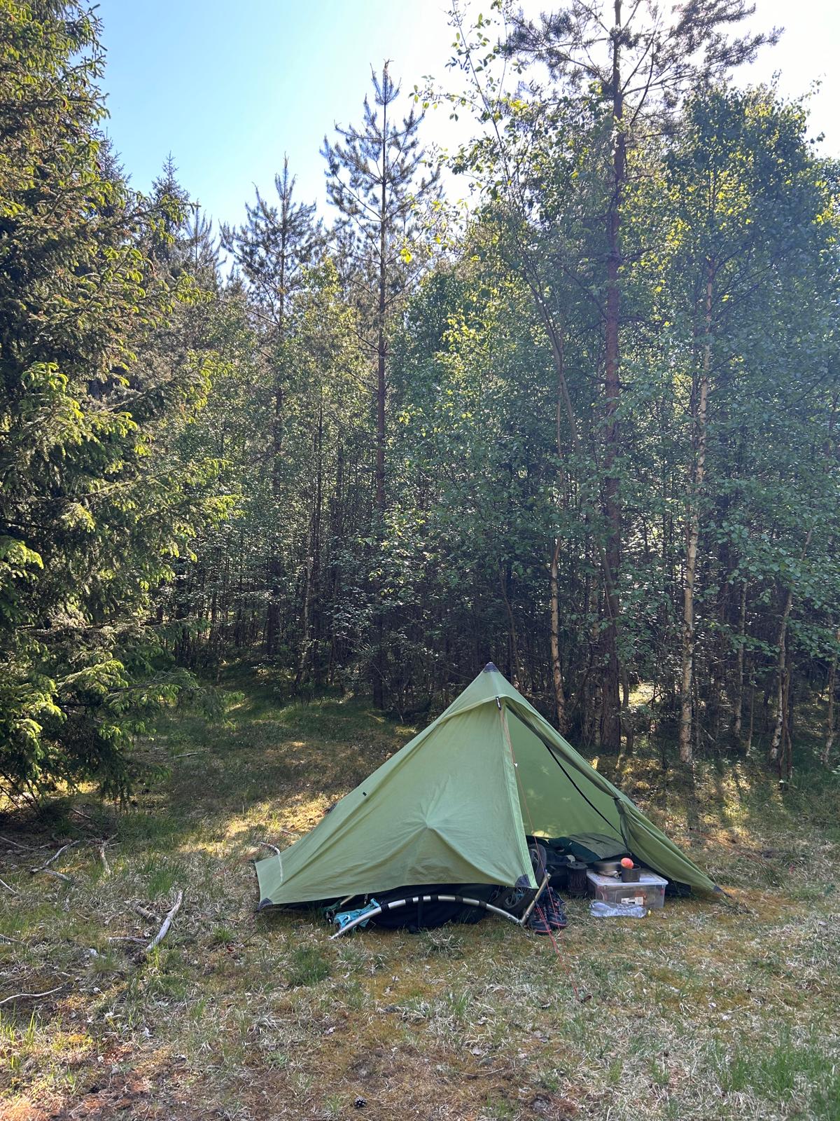 Most of the students are too shy to say anything, and every single one of them trips over my guyline until I finally pull the stake out of the ground—getting yanked like that over and over isn’t much fun. Later, one of the teachers tells me they’re all fifteen years old and spending the day doing various outdoor activities. He clears away all the treasure hunt materials, and we have a nice chat. I’ve definitely enjoyed all the surprised faces, and by noon I finally have everything packed up and get going again. But here’s the victory: I can let this go now—that slow start. It is what it is.