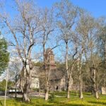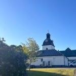 A las 10:00 deja de llover y, media hora más tarde, el cielo está azul y despejado. Como mi carrito ya no va muy bien, planeo la ruta por asfalto, y eso va bien. Hacia las 11:30 llego a Ödeshög, un pueblo con una plaza donde hay una escultura gigante hecha de esferas. No encuentro por ninguna parte lo que significa, pero vaya, no pasa desapercibida. ¡Y qué fea!