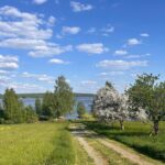 Cuando por fin despeja, sigo una ruta preciosa junto al lago. El paisaje es totalmente distinto a lo que he visto hasta ahora. Qué maravilla, y el sol empieza a salir. En Omberg encuentro otro refugio, este con vistas y una escalera que baja al lago. Intento meterme al agua, pero está helada. Un arroyito con agua directamente de las montañas desemboca justo ahí. Nada de nadar, entonces, me doy una lavadita con esponja. ¡Suficientemente valiente con ese frío!