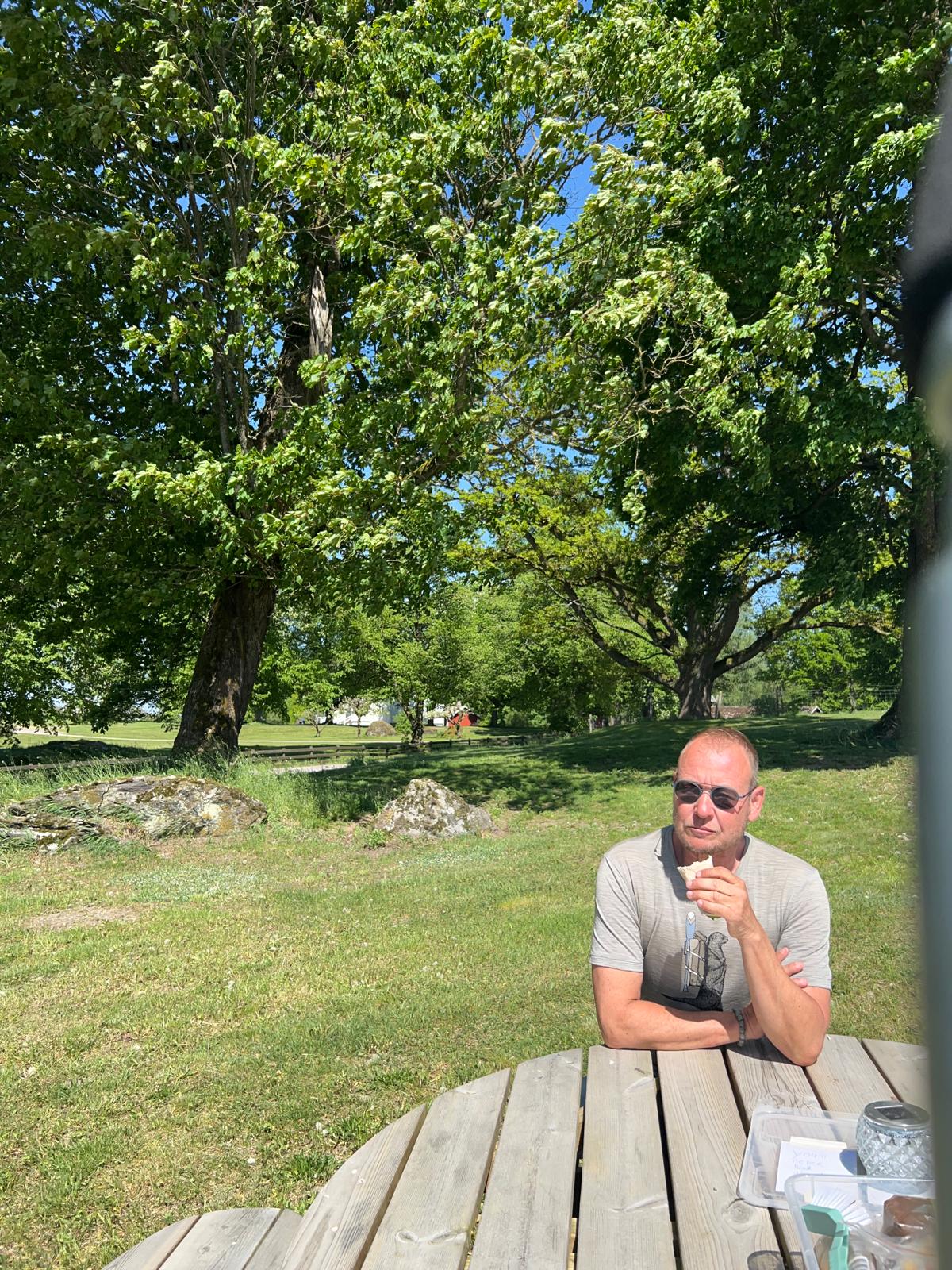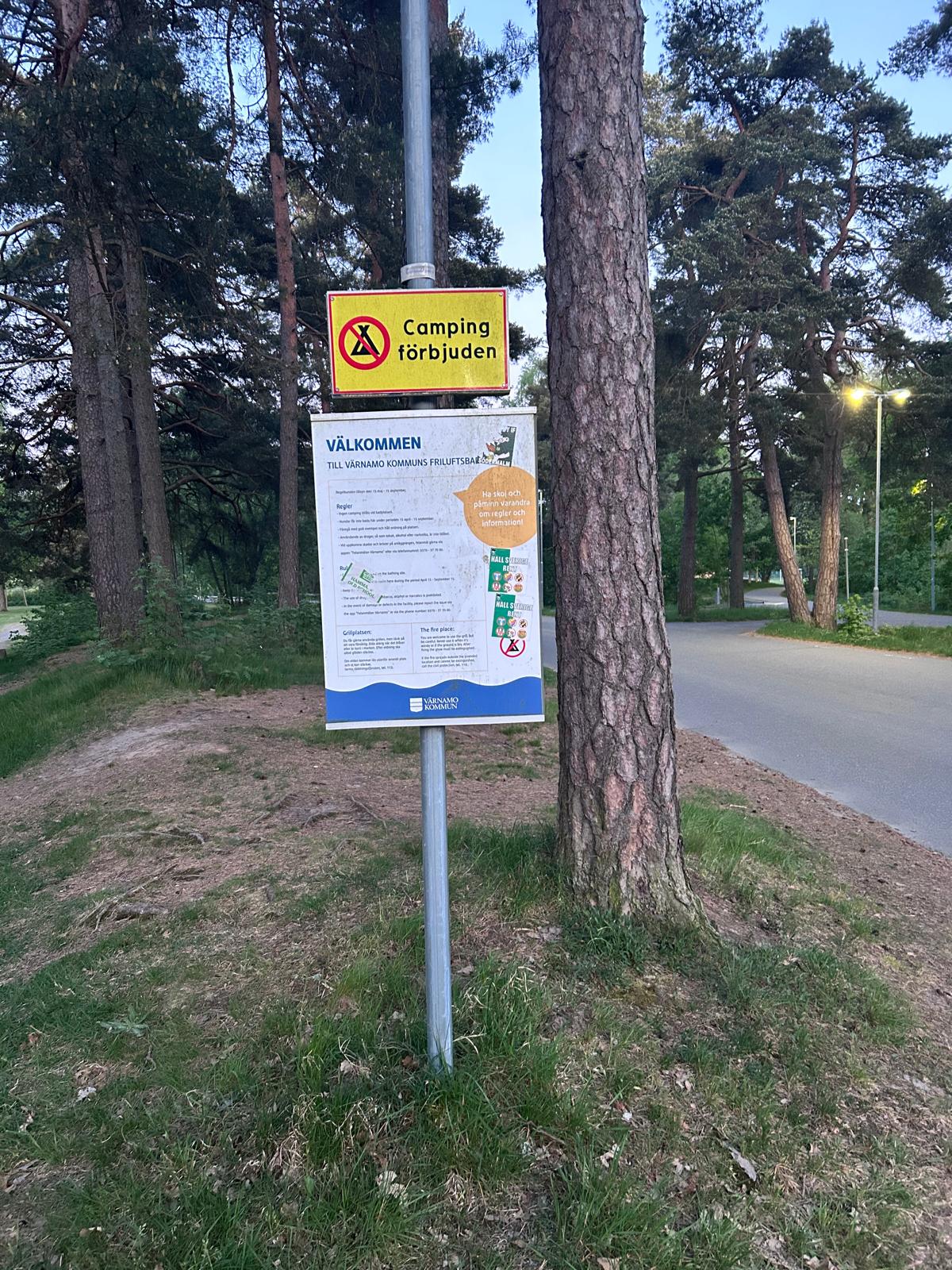 Después de la siesta, espero encontrar rápidamente un lugar para dormir, pero ya he llegado a las afueras de Värnamo, que para los estándares suecos es una ciudad grande. Había visto en el mapa un refugio, pero resulta estar en un parque, y no me parece buena idea dormir allí, si es que siquiera está permitido. Me siento seguro en la naturaleza, pero no en una ciudad. Demasiada gente rara. Esperaba encontrar algo antes de llegar a la ciudad, pero no hubo suerte. También vi que no habrá más supermercados en bastante tiempo, así que a las 20:30 hago una compra rápida antes de salir corriendo a buscar dónde dormir.