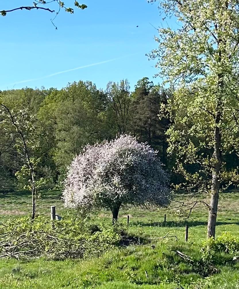 En las ruinas de una antigua iglesia veo una caravana. Hay una mujer haciendo panqueques y… sí, ¡matrícula amarilla! Les deseo buen provecho y empezamos a charlar. Son una familia de Hoorn—¡Westfriezen! Eso crea un vínculo inmediato. Conozco a toda la familia: Marissa, Mark y sus hijos Stan y Maik, dos chavales entusiastas. Marissa me pregunta si quiero un panqueque con bacon. Me cuesta decir que sí, por vergüenza, pero la verdad es que suena irresistible. “¡Di que sí!” me dice Marissa. Así que digo que sí. Qué momento tan agradable. El pequeño cuenta sus aventuras con tanto entusiasmo—uno de los mejores momentos fue cuando caminaban por un camino de tierra y un enorme tractor pasó a su lado levantando una nube de polvo tan fina que ¡hasta se le metió en las orejas! Qué encanto de niño. Y qué familia tan linda. Su primer viaje en una caravana prestada, y lo de acampar en libertad aún les resulta una aventura. Son estos los encuentros que dan vida al viaje. Intercambiamos nuestros perfiles de Instagram y sigo mi camino.