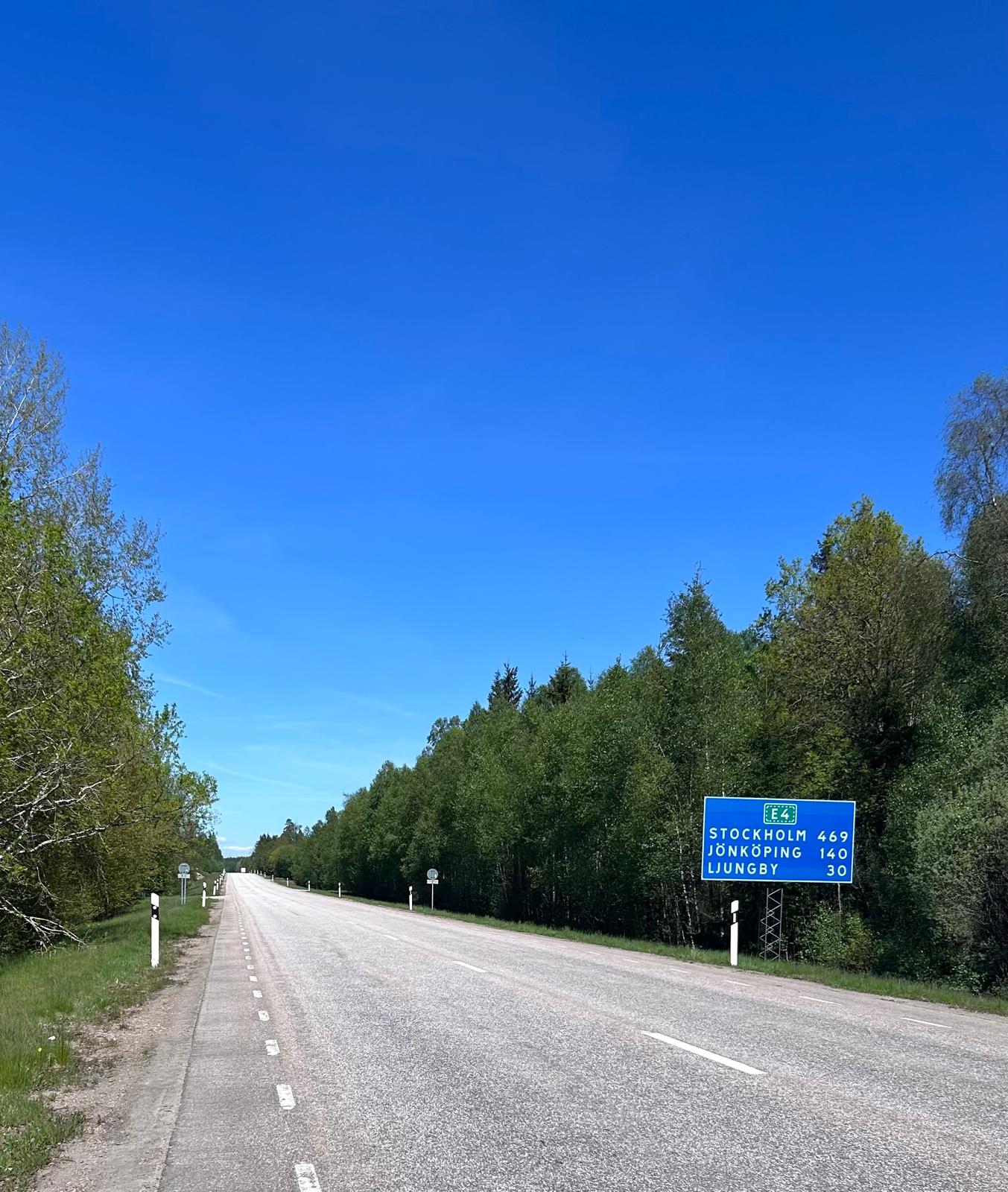 Hoy la ruta es monótona, gran parte junto a la E4. No es que pase tanto tráfico, pero los camiones que rugen a mi lado no son nada agradables. Como para colmo olvido rellenar mi agua, y no encuentro ni una fuente. Menos mal que había comprado un pepino en el supermercado—me lo como para aliviar la sed.