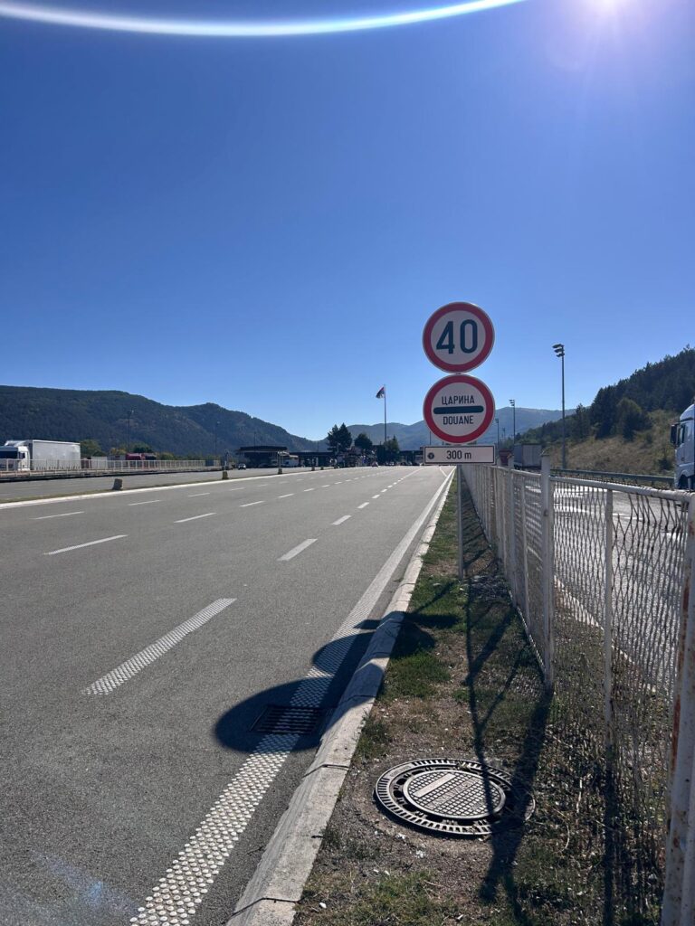 Vrij spoedig ben ik al bij de Servisch/Bulgaarse grens. Er is geen speciale grensovergang voor voetgangers, dus je moet over de snelweg lopen langs de loketten waar ook de auto’s stoppen. Voordat ik de grens overga naar Bulgarije, neem ik nog snel een koffie, die ik net zo snel over me heen gooi. Naast dat het heet is, baal ik, want ik had net alles gewassen en ik wil de volgende dagen kamperen. Zo goed en zo kwaad als het gaat spoel ik de koffie uit mijn broek bij de toiletten.